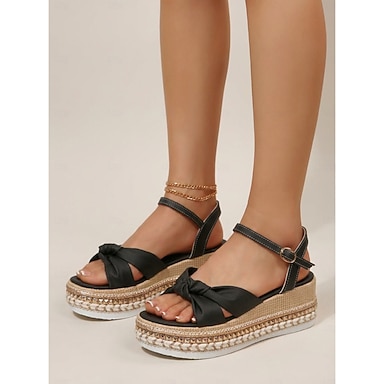 Sandali con zeppa espadrillas neri da donna - comodi sandali con plateau in juta per vacanze al mare e feste estive all'aperto &abiti da crociera in stile boho