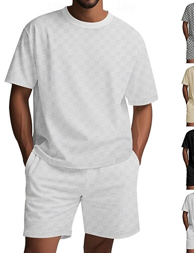 Da uomo Completi T-shirt Tuta Set pantaloncini e T-shirt Manica Corta Girocollo Estate Scacchiera Ginnastica Casual Jacquard 2 Pezzi Casuale Vacanza Abbigliamento quotidiano Nero Bianco Kaki