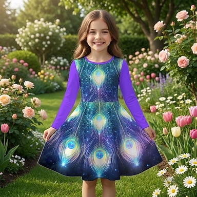 ragazze' 3D Grafico Pavone Abito Manica Lunga Stampa 3D Primavera Autunno Quotidiano Vacanza Feste Casual Principessa Bello Bambini 4-12 Anni Vestito Casual Abito a trapezio Lunghezza al ginocchio