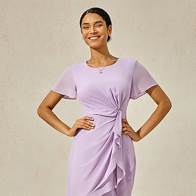 Per donna Abito al ginocchio Abito a strati Elegante Formale A farfalla Ospite di nozze Cocktail party Vestibilità regolare Semplice Manica Corta Girocollo Viola chiaro Estate