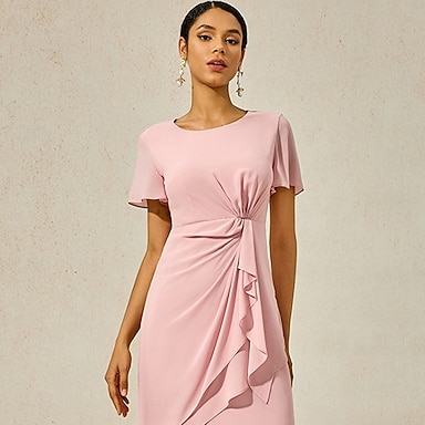 Per donna Abito al ginocchio Abito a strati Elegante Formale A farfalla Ospite di nozze Cocktail party Vestibilità regolare Semplice Manica Corta Girocollo Rosa polverosa Estate