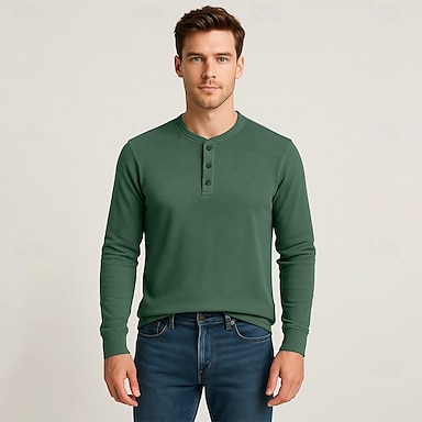 Per uomo maglietta Tinta unica Henley Normale Esterno Interni Manica lunga Stile vintage Abbigliamento Classico