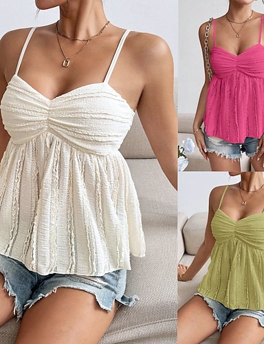 Per donna Canotta a canotta Arricciato Tinta unica Quotidiano Elegante Casual Senza Maniche Spallina Top Regolari Quotidiano Uscire Abbigliamento da vacanza Bianco Rosa Fucsia Verde Estate Primavera