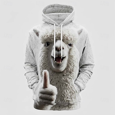 Per uomo Stampa 3D Divertente Alpaca Felpa con Cappuccio Felpa 3D Fantasia Manica Lunga Girocollo Abbigliamento casual alla moda Club Regalo Bianco 1 Bianco Bianco 2 Bianco 3 Coulisse Autunno Inverno
