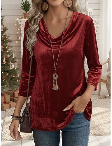camicetta donna camicetta basic casual paillettes manica lunga regular top girocollo quotidiano rosso fucsia autunno inverno
