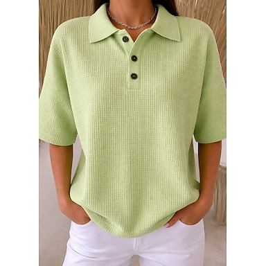 Per donna Camicia a nido d'ape Top estivi Bottoni Tinta unica Vintage Elegante Senza Maniche Colletto Polo Top lunghi Quotidiano All'aperto Ferie Giallo Verde chiaro Rosa Estate Primavera Autunno