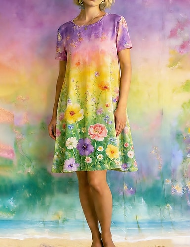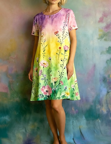 Per donna Mini Abito Vestito T-Shirt Vestito Estivo Abito a trapezio Vacanza Casual Boho Spiaggia Uscire Vestibilità regolare Floreale Grafico Manica Corta Scollo a V Blu Rosa Verde Estate Primavera