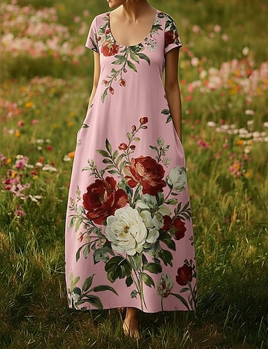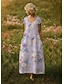Per donna Abito lungo maxi Abito Boho Vestito Casual Vintage Quotidiano All'aperto Spiaggia Vestibilità regolare Floreale Manica Corta Collo a U Viola Estate Primavera