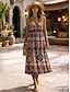 Per donna Abito Midi Abito Boho Elegante Festa Vestibilità regolare Boho Paisley Damasco Manica Corta Girocollo Nero Marrone Estate