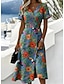 Per donna Abito Midi Abito a Tubino Vacanza Casual Boho Vestibilità regolare Floreale Grafico Manica Corta Scollo a V Blu Estate Primavera