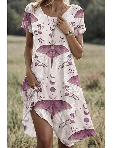 Per donna Abito Midi Vestito T-Shirt Abito a trapezio Abito Estivo Vacanza Casual Quotidiano Spiaggia Ferie Vestibilità regolare Floreale Grafico Animale Manica Corta Scollo a V Blu Rosa Viola Blu