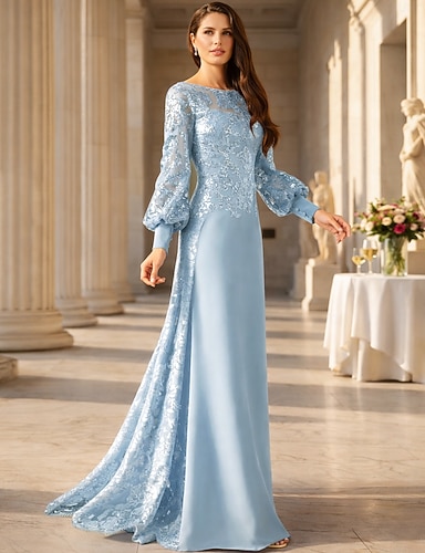 Linea ad A Tubino Colonna Lunghezza al pavimento Abito da invitata a nozze Abito Formale Abito da sera Abito da cerimonia per signora Manica Lunga Scollo a Barca Elegante Serata Formale Chiffon con
