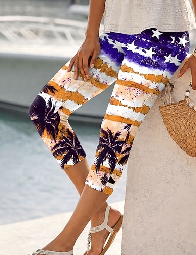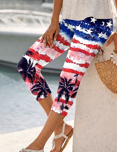Per donna Chinos Leggings Vacanza Moda Streetwear Capri Vita AltaPantsGiorno dell'indipendenza americana Grafico Bandiera Americana Comodità Morbido Confortevole Elasticizzato Quotidiano All'aperto