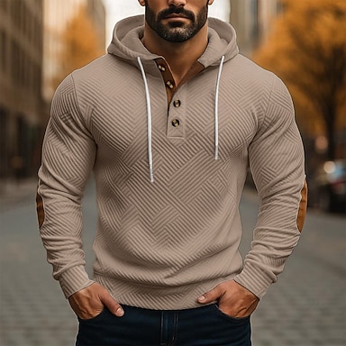 Per uomo Felpa con cappuccio Felpa con cappuccio abbottonata Bianco Blu marino Marrone Cachi Grigio Con Cappuccio Geometrico Semplice Testurizzato Sport & Outdoor Casuale Quotidiano Streetwear Cool