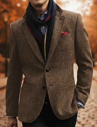 Per uomo Blazer in Tweed Colletto ad incastro Retrò Vintage Spina di Pesce Blazer Nero Marrone Blu scuro Taglie Forti Monopetto Due Bottoni