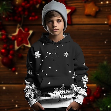 Da ragazza 3D Pop art Pupazzo di neve Felpa con cappuccio Manica lunga Autunno Inverno Di tendenza Adorabile Essenziale Bambino 4-12 anni Con cappuccio Esterno Informale Giornaliero Standard