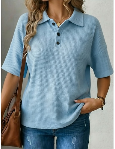 Per donna Maglietta Polo Top a maglia waffle Tinta unica Grafico Semplice Moda Classico Casual Manica Corta Colletto a Camicia Top Regolari Quotidiano Uscire Weekend Nero Bianco Rosso Azzurro cielo