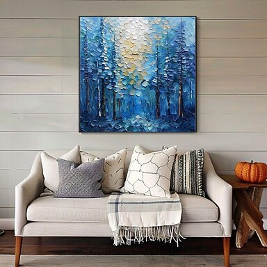 Dipinto a olio fatto a mano su tela, decorazione da parete, moderno, astratto, con texture, paesaggio forestale, per soggiorno, arredamento per la casa, dipinto appeso su telaio teso/dipinto