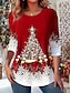 Natale Per donna Maglietta Grafico Albero di Natale Vintage Moda Elegante Manica Corta Manica Lunga Girocollo Top Regolari Quotidiano Weekend Stampato Rosso Autunno Inverno