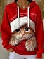 Per donna Felpe con cappuccio Grafico Gatto Natale Moda Streetwear Casual Manica Lunga Con Cappuccio Top Regolari Abbigliamento Quotidiano Casuale Ferie Coulisse Stampato Rosso Autunno Inverno