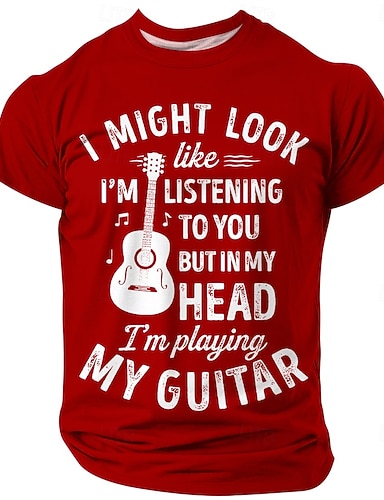 Note di chitarra acustica da uomo Potrei sembrare che ti stia ascoltando, ma nella mia testa sto suonando la mia chitarra Divertente maglietta sarcastica da musicista con grafica a maniche corte