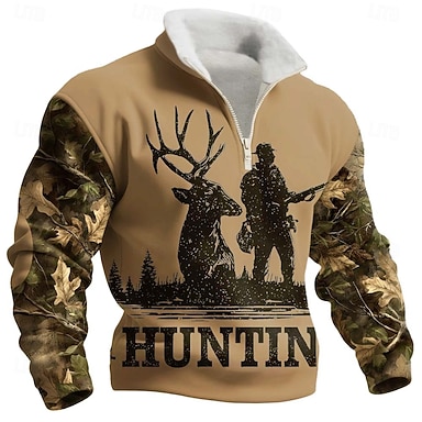Per uomo Animale Cervo Pile Felpa Moda Casual 3D Collo alla coreana Zip a un quarto All'aperto Abbigliamento casual alla moda Vacanza Regalo Marrone Cachi Grigio scuro Grigio Mezza cerniera Autunno