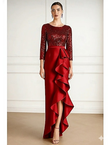Tubino Colonna Lunghezza al pavimento Vestito da Festa Abito da Cocktail Abito da invitata a nozze Abito da cerimonia per signora Mezza Manica Collo gioiello Elegante Taglie Forti Ospite di nozze