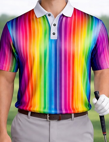 Per uomo Blocco di colori Golf Polo Sportivi Manica Corta Magliette polo Camicie con Colletto Casual Athleisure Abbigliamento quotidiano Stampa 3D Bottoni Primavera & Estate Arcobaleno