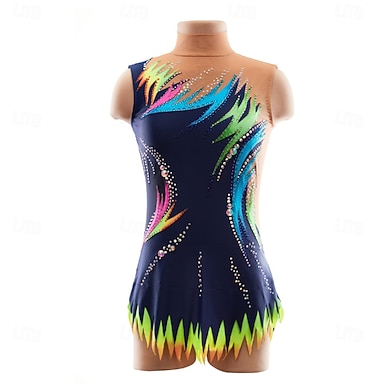 Vestito da pattinaggio artistico Per donna Da ragazza Pattinaggio sul ghiaccio Vestiti Blu scuro Collage Foro per pollice Retato Elastene Elasticizzato Addestramento Da allenamento Professionale