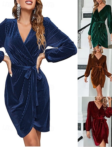 Per donna Mini Abito Abito di Natale Abito in Velluto Vestito da Festa Abito da Cocktail Elegante Moderno Festa serale Feste Ferie Vestibilità regolare Semplice Manica Lunga Scollo a V Vino Verde