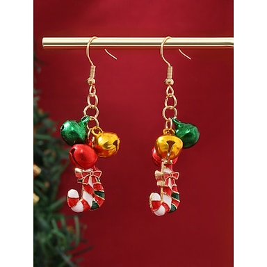 orecchini natalizi da donna a forma di bastoncino di zucchero con campanellini e fiocco, gioielli festivi per feste di Natale e regali