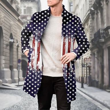 Giorno dell'Indipendenza Americana Per uomo Bandiera Americana Giacca blazer Cappotto Di tendenza Confortevole Traspirante Artistico Casual Quotidiano Festival Tasca Stampa 3D Bottoni Tutte le
