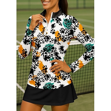 Per donna Leopardo Sfumatura Maglietta Maglietta sportiva Polo da golf Maglia da tennis Manica Lunga Cerniera Floreale UPF50+ Resistente ai Raggi UV Alta elasticità Traspirante Tennis Golf Pickleball