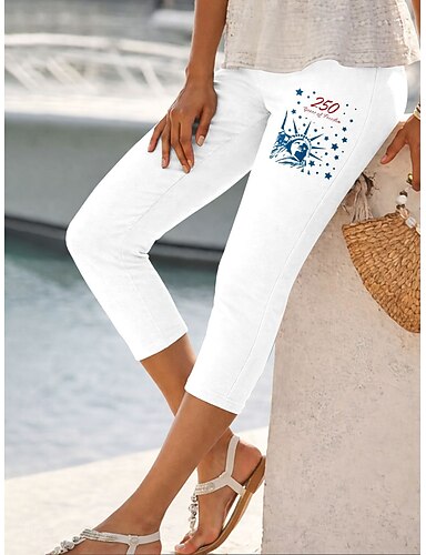 Per donna Chinos Leggings Vacanza Moda Streetwear Capri Vita AltaPantsGiorno dell'indipendenza americana Grafico Bandiera Americana Comodità Morbido Confortevole Elasticizzato Quotidiano All'aperto