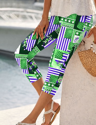 Per donna Chinos Leggings Vacanza Moda Streetwear Capri Vita AltaPantsGiorno dell'indipendenza americana Grafico Bandiera Americana Stampato Comodità Morbido Confortevole Elasticizzato Quotidiano