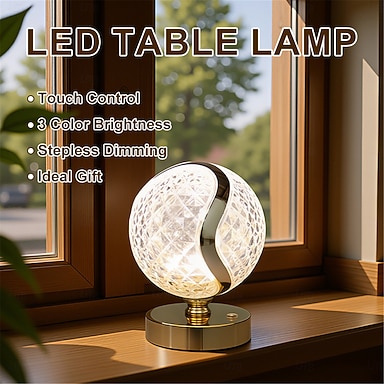 Lampada da tavolo con sfera in cristallo acrilico dimmerabile a tre colori con ricarica USB, per hotel, bar, decorazione creativa, luce notturna, lampada da tavolo per camera da letto, comodino,