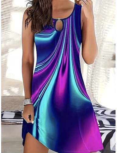 Per donna Mini Abito Abito a trapezio Abito Estivo Abito a spalle scoperte Vacanza Casual Quotidiano Vestibilità regolare Ombre Grafico Senza Maniche Girocollo Viola Estate Primavera