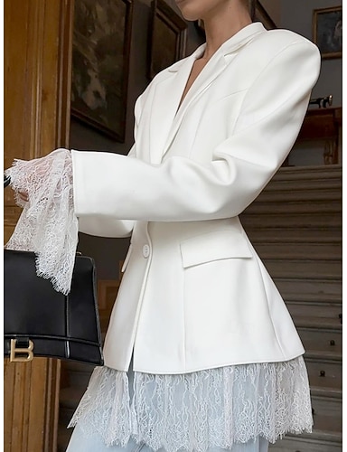 Per donna Blazer Giacca Casual Confortevole Pizzo Bottoni Elegante Moda Casual Tinta unica Formale Abbigliamento quotidiano Uscire Weekend Regolare Bavero classico Vestibilità regolare Manica Lunga