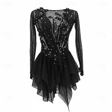Abito da pattinaggio artistico Per donna Ragazze Pattinaggio sul ghiaccio Vestito Nero Patchwork Orlo asimmetrico Rete Spandex Alta elasticità Allenamento Competizione Vestiti da pattinaggio sul