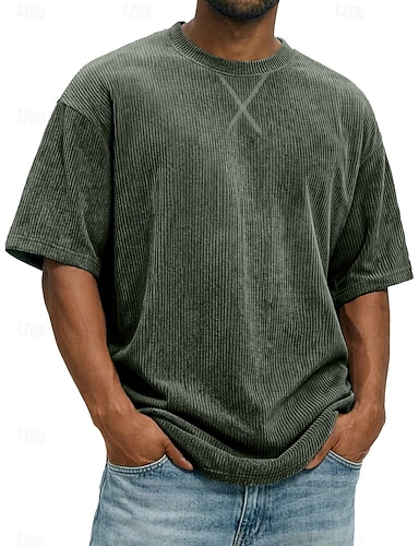 Per uomo Maglietta Camicia di Velluto a Coste Manica Corta Girocollo Estate Primavera Tinta unica A righe Striscia di Fossa Moda Essenziale Morbido Velluto a coste Vacanza Streetwear Casual Quotidiano