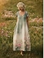 Per donna Abito lungo maxi Abito Boho Vestito Casual Vintage Quotidiano All'aperto Spiaggia Vestibilità comoda Floreale Manica Corta Collo a U Verde Estate Primavera