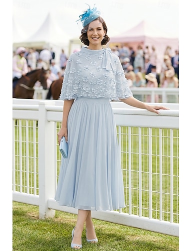 Linea ad A Lunghezza Tè Vestito da Festa Abito da Cocktail Abito da invitata a nozze Abito da cerimonia per signora Mezza Manica Scollo a Barca Elegante Formale Ricevimento di matrimonio Chiffon con