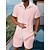 Per uomo 2 pezzi Completo di camicia Set abbinati Maglietta informale Camicia con bottoni Bianco Rosa Kaki Grigio Manica lunga Liscio A fascia Da mare Strada Abbigliamento Di tendenza Informale