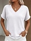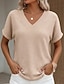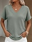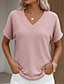 Per donna Maglietta Top a maglia waffle Basic Vintage Elegante Classico Manica Corta Scollo a V Top Regolari Casuale Nero Bianco Rosa Verde Albicocca Estate Primavera