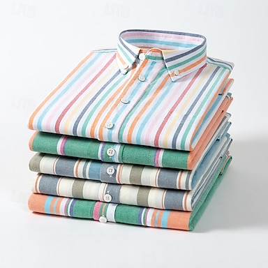 Per uomo Camicia Camicie Camicia con bottoni Strisce Matrimonio Feste Blu Verde Azzurro cielo Manica corta Bavero Estate Primavera Abbigliamento Tasche