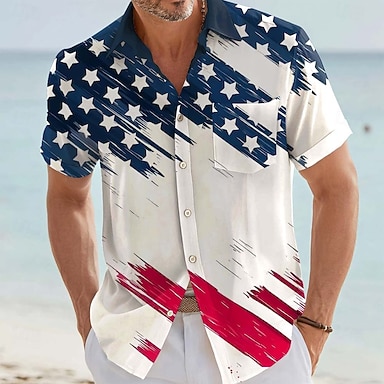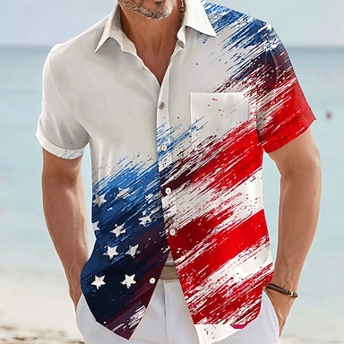 Camicia Patriottica da Uomo Bandiera Americana per il Giorno dell'Indipendenza Camicia Estiva Camicia con Bottoni Manica Corta Moda Casual Vacanza Estiva Primavera Colletto a Stampa 3D