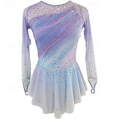 Abito da pattinaggio artistico Per donna Ragazze Pattinaggio sul ghiaccio Vestito Azzurro cielo Patchwork tintura sfumata Spandex Rete Alta elasticità Allenamento Competizione Vestiti da pattinaggio