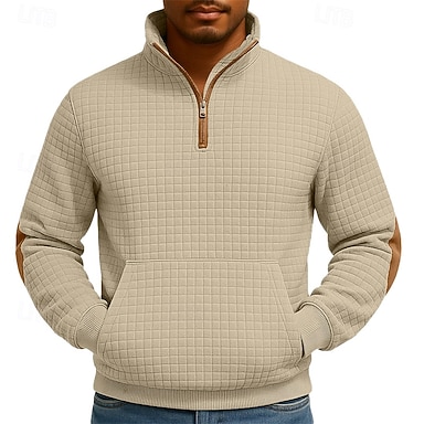 Per uomo Maglia Felpa a nido d'ape Felpa con cappuccio Maglione Felpa con zip corta Nero Bianco Blu marino Cachi Grigio chiaro Colletto Mao Semplice Patchwork Tasca a marsupio Testurizzato Casuale
