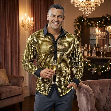 Retrò Vintage Anni '70 Disco Cosplay Paillettes Tinta unita Costume Per uomo Costume di Carnevale Halloween Carnevale Mascherata Performance Festa / Sera Palcoscenico Adulti Camicia Estate Primavera