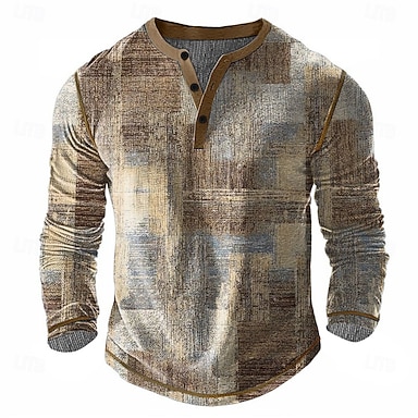 Per uomo Grafico Maglia Henley Maglietta a nido d'ape Manica Lunga Vintage Quotidiano Retrò Vintage Sport all'Aperto Casuale Ferie Primavera & Estate Tutte le stagioni Marrone Scuro Grigio Blu Caff